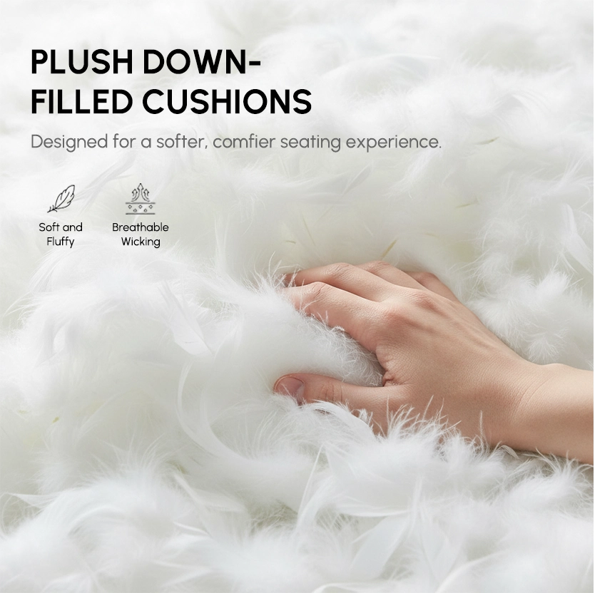 Seat/Back Cushions: 50% feather down, 50% blown-in fiber for a plush, supportive feel