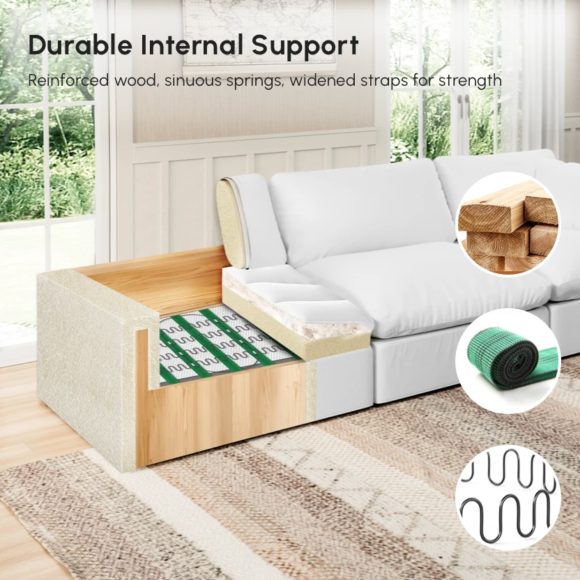 Introducing the Nubes Cloud Couch – the perfect blend of comfort and durability. Featuring feather-down filled cushions for a super-soft seating experience, this couch offers a cozy, cloud-like feel. The fully removable covers allow you to easily switch up the color to match your style or the seasons. Built with a solid wood structure, it’s designed to last for 10+ years, while the linen-blended fabric adds a touch of elegance and durability.