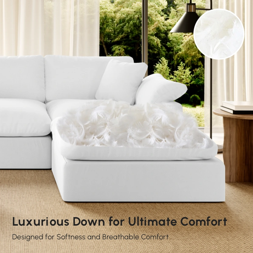 Experience the most comfortable sofa we have ever created, the Cloud. Featuring a unique design that is fully modular, the Cloud is handmade from Goose Feather Down, blending with Polyfill and cushioning, to create the most sensual lounging experience we have ever produced.